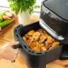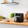 - Cubeta de 5,5 L de capacidad para poder cocinar grandes cantidades de alimentos. 1700 W de potencia para cocinar de manera rápida todos los platos. Resultados excepcionales en todas las recetas gracias a la tecnología PerfectCook de aire caliente que circula por el interior y sale por los orificios traseros.