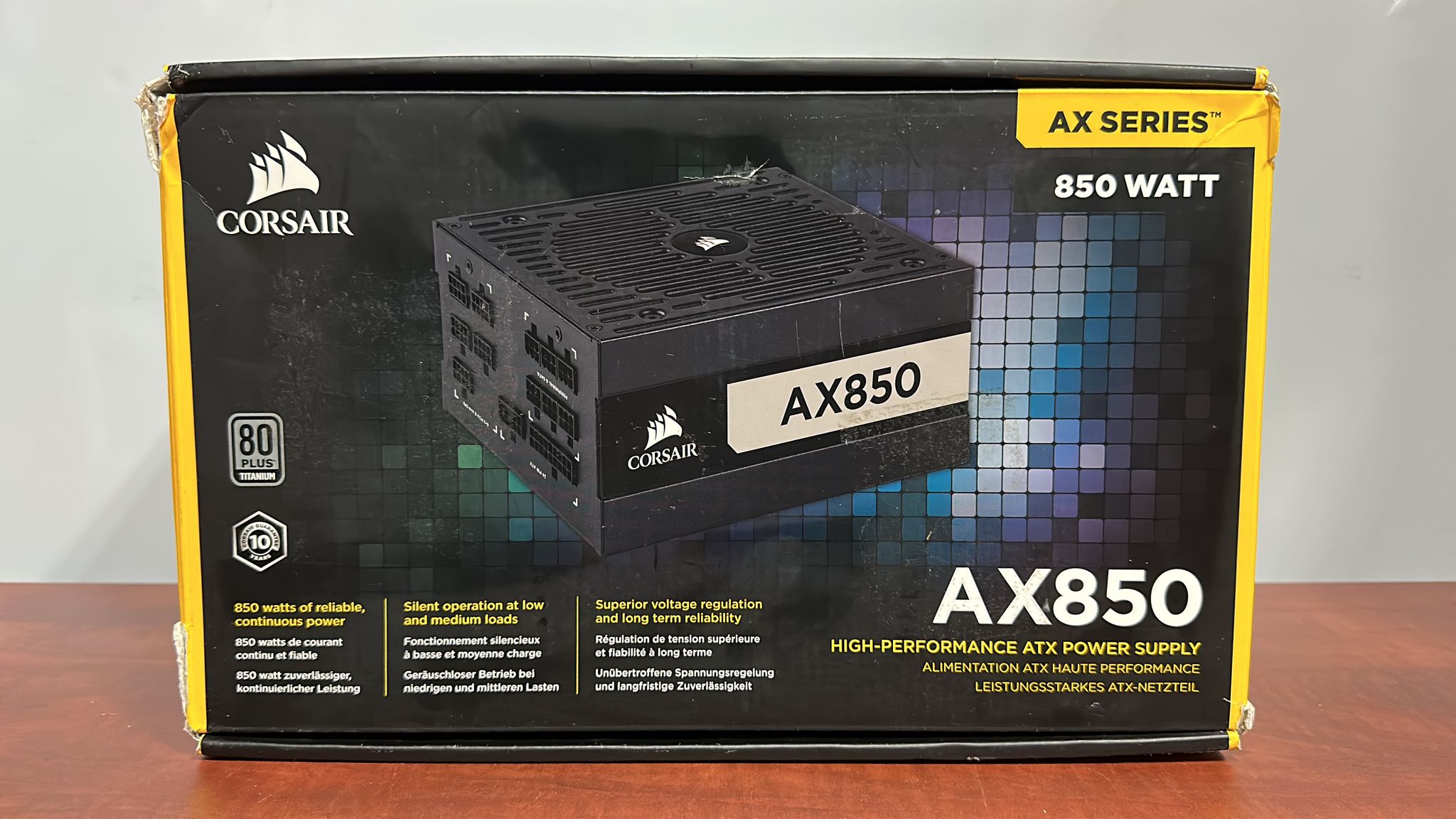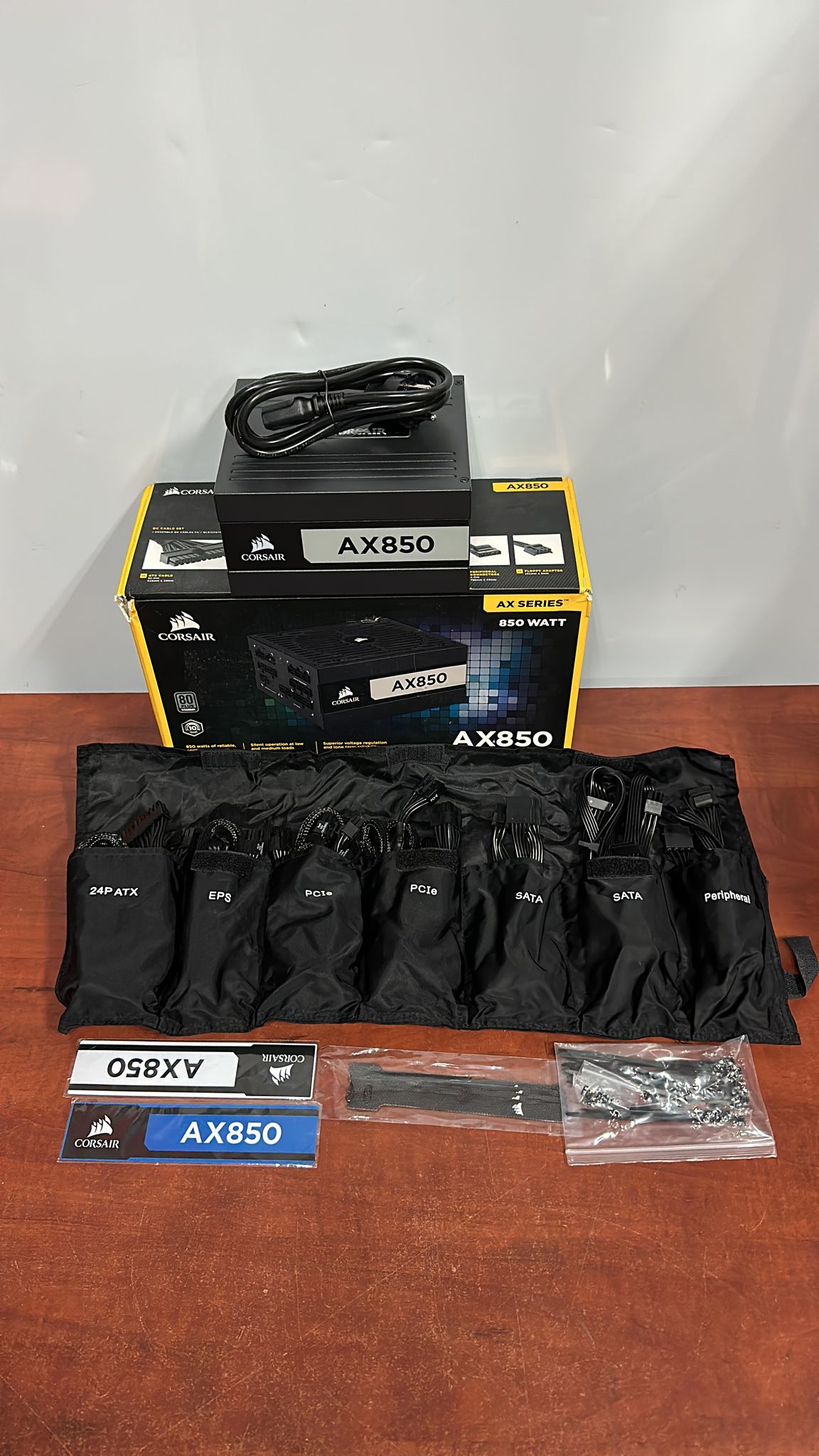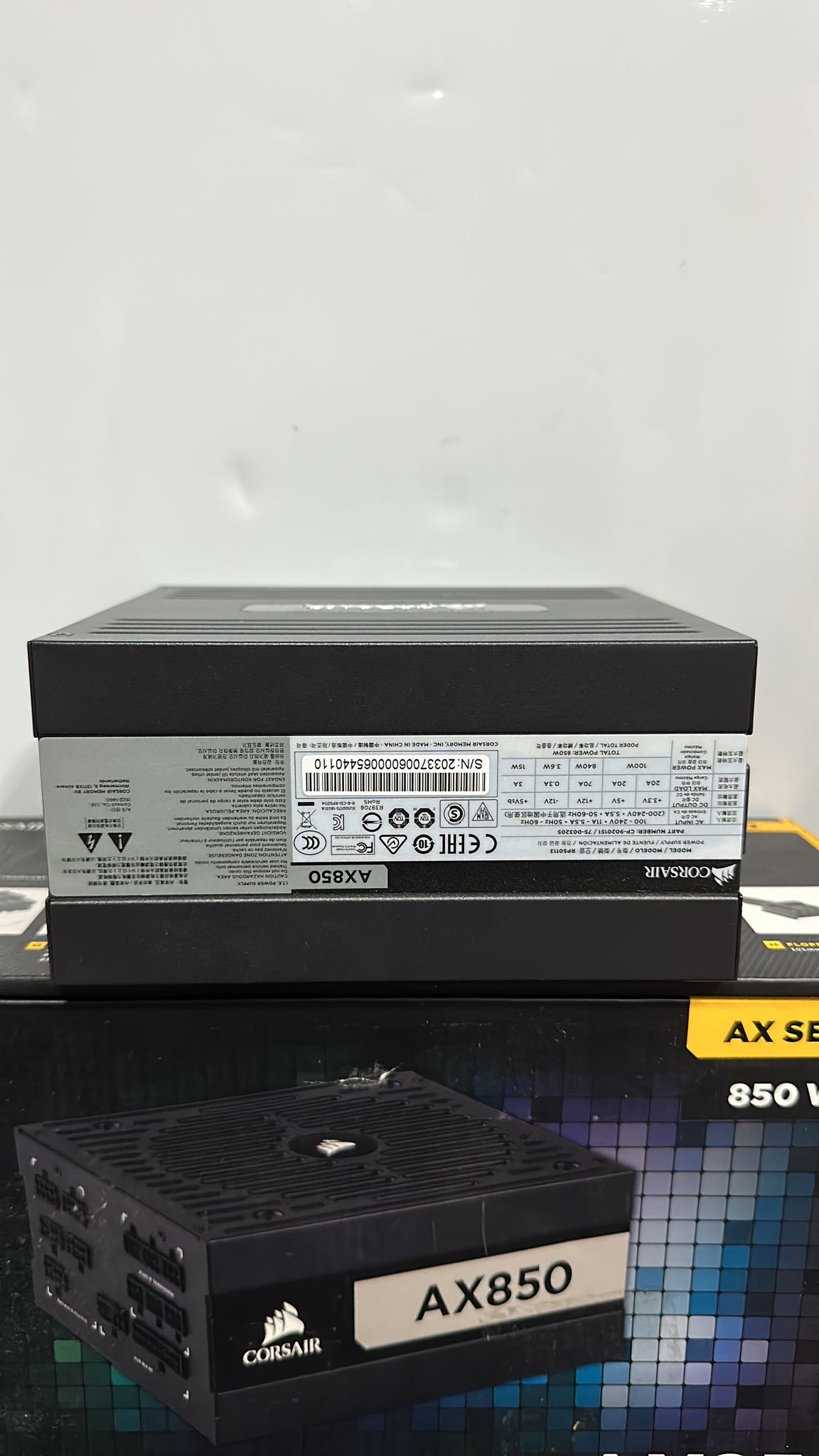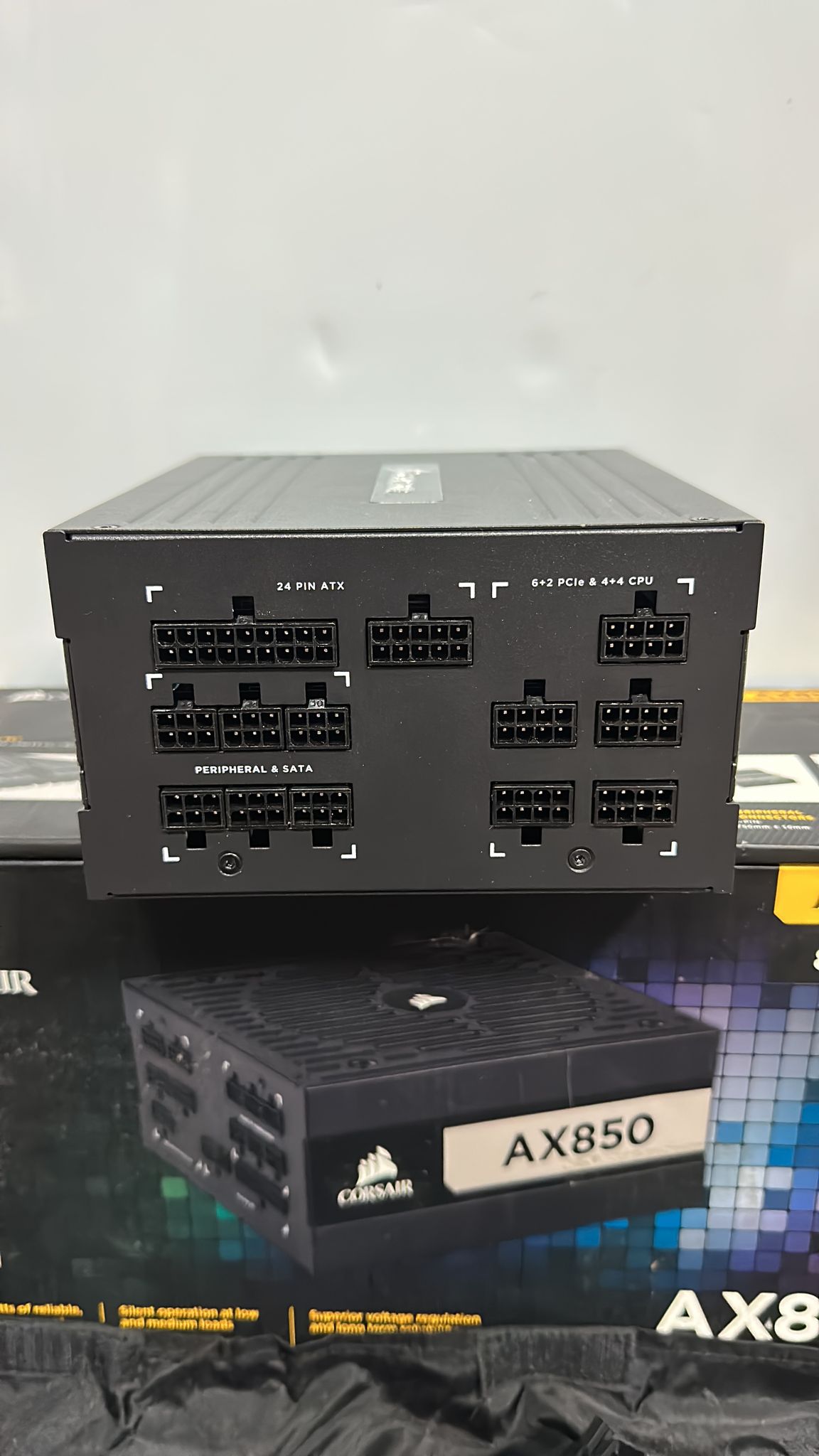 AX Series™ AX850: Fuente de alimentación ATX de 850 W completamente modular con certificación 80 PLUS® Titanium Las fuentes de alimentación completamente modulares de la serie CORSAIR AX ofrecen una potencia eficiente 80 PLUS Titanium y un funcionamiento casi sin ruido para que complete su diseño más ambicioso.