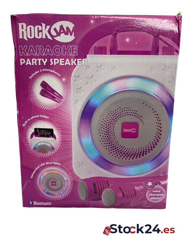 Máquina de Karaoke Bluetooth recargable RockJam de 10 vatios con dos micrófonos, efectos de cambio de voz y luces LED