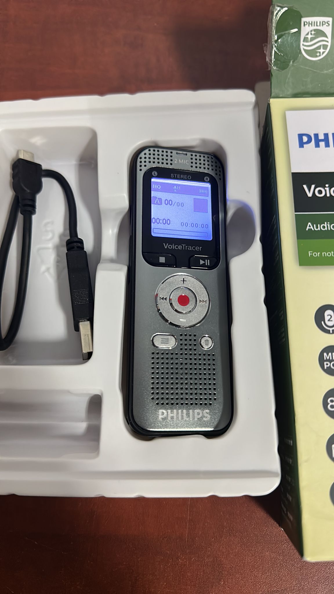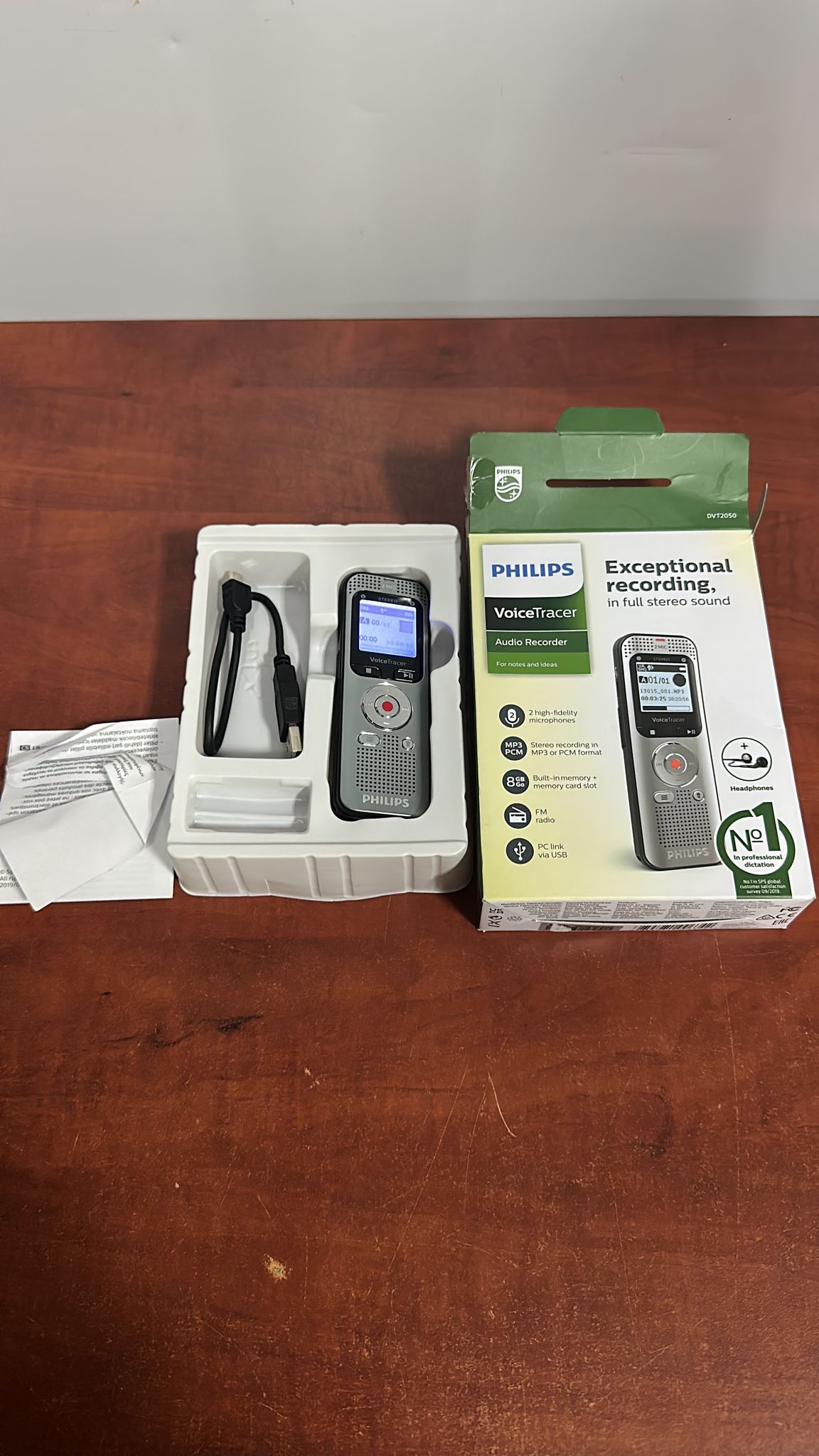 Philips VoiceTracer Grabadora de Audio DVT2050 – Stereo WAV, Conexión a PC, 8GB, USB, Gris.