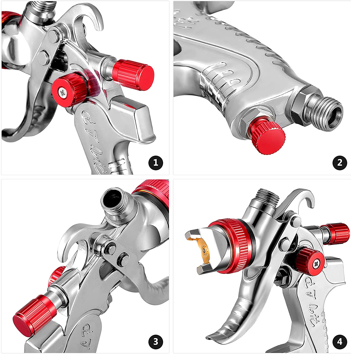 • Pistola pulverizadora de alta atomización: la pistola pulverizadora HVLP utiliza tecnología HVLP y conexión de aire comprimido, cuerpo de aleación, con recipiente de pintura de 600 ml, 3 boquillas de acero inoxidable: 1.4 mm, 1.7 mm, 2.0 mm, pistola industrial, pulverización fina, ahorre tiempo y materiales, logran un efecto de pulverización uniforme y detallado.