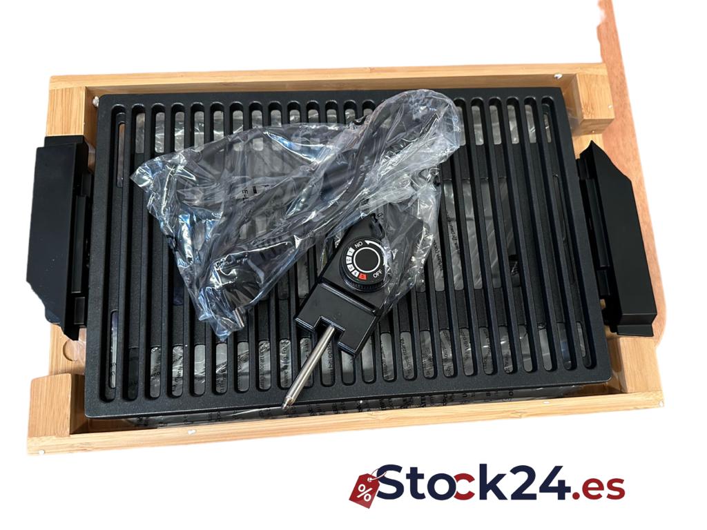 Tristar BP-2785 Parrilla y barbacoa eléctrica – Con elegante carcasa de bambú – Superficie para cocinar: 37 x 25 cm