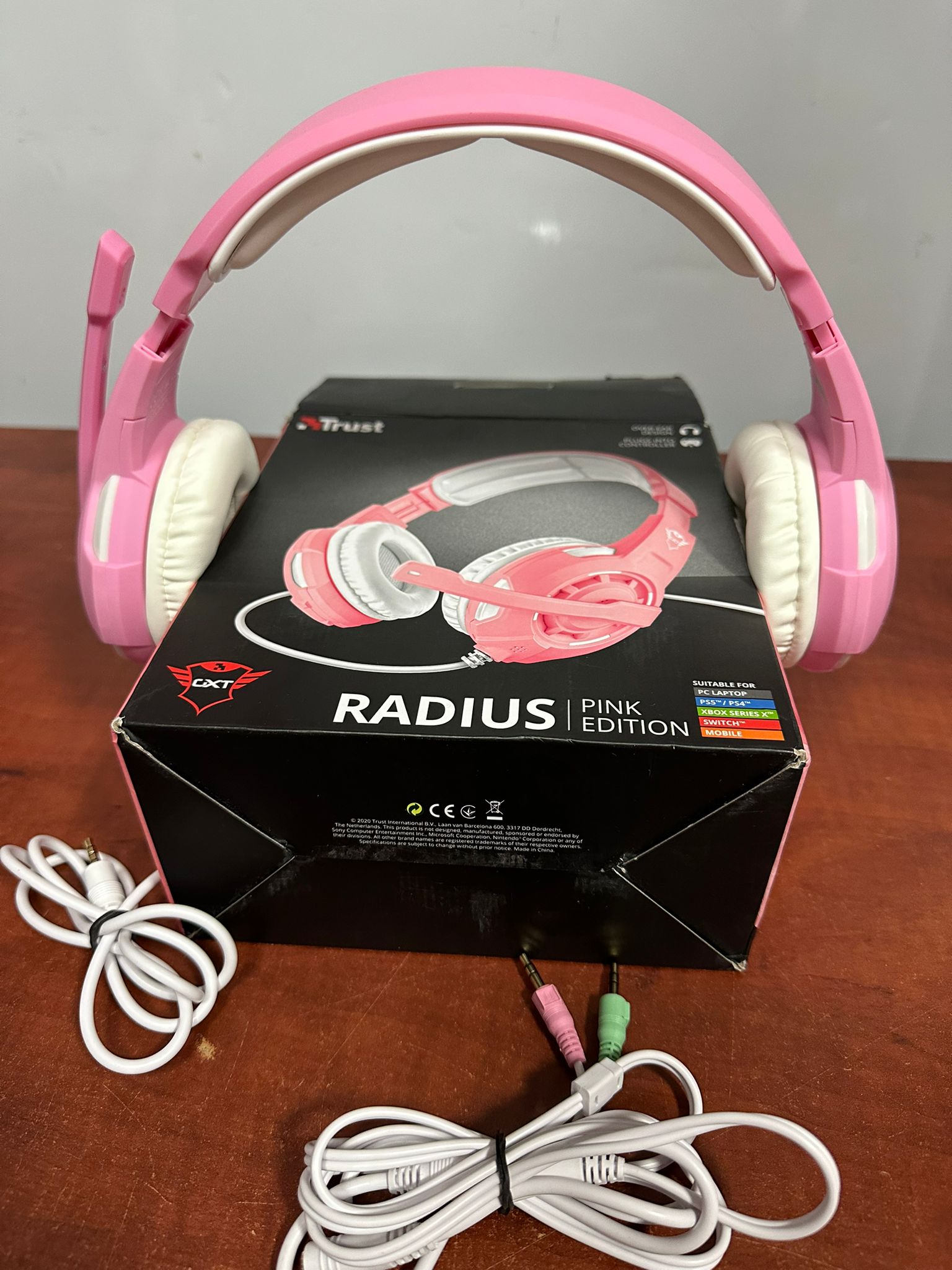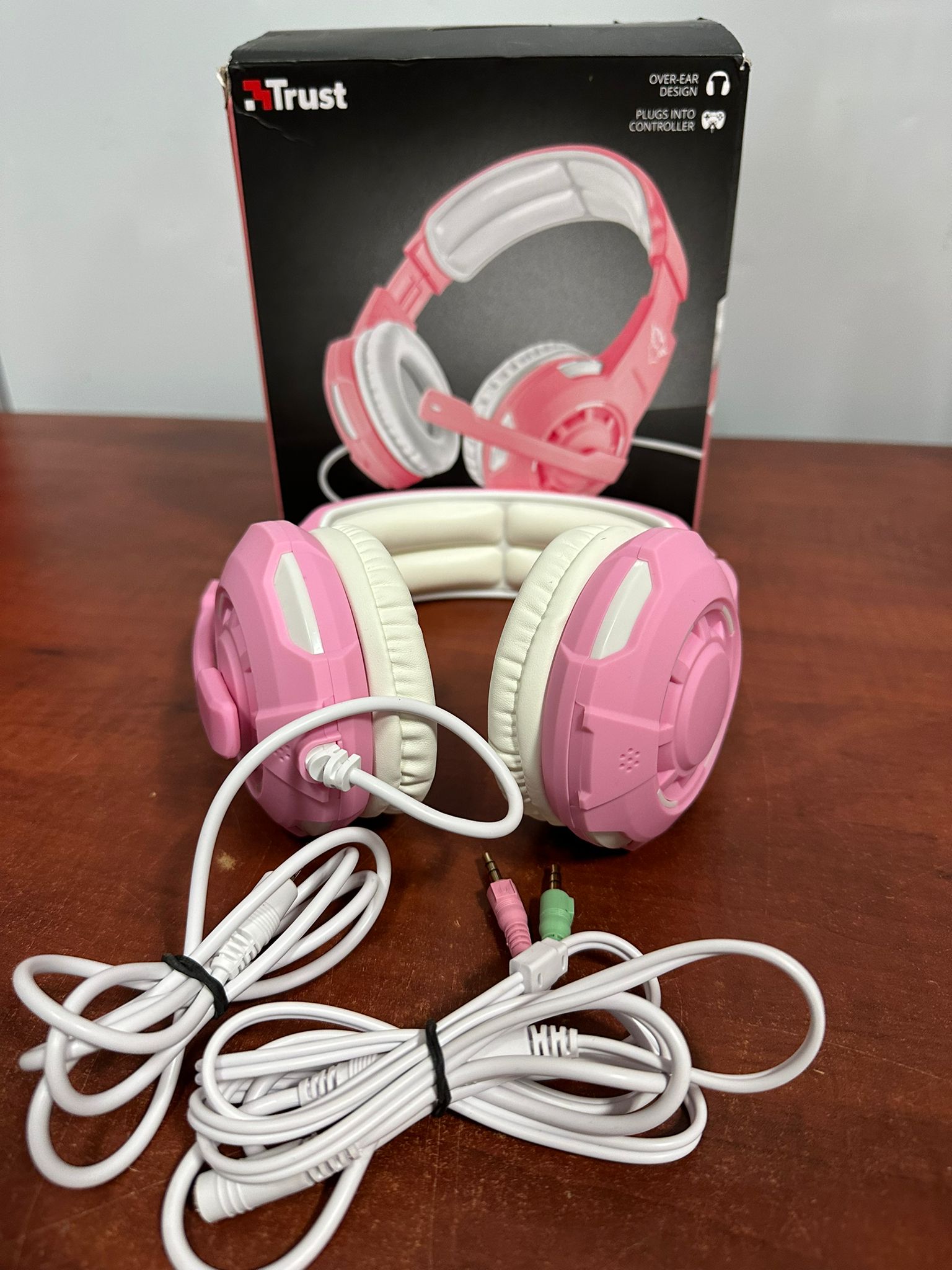 Trust Gaming GXT 411P Radius Auriculares Gaming Multiplataforma para PC, PS5, PS4, Xbox, Nintendo Switch, Mobile, Over Ear, Jack de 3.5 mm, Control de Volumen, Micrófono Ajustable – Rosado