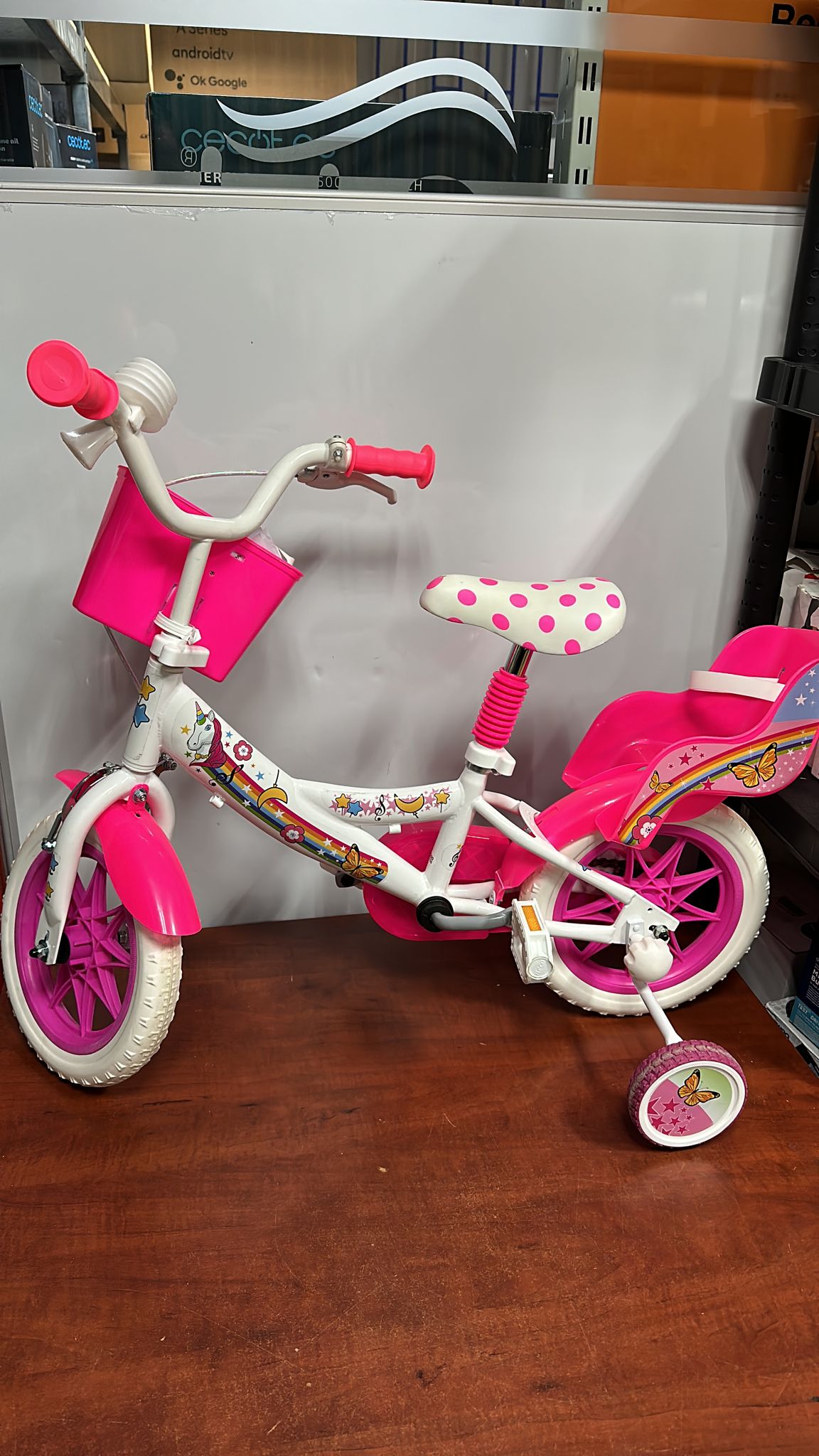 Bicicletas niña Modelo 12″ Venus Adecuado para niñas de 3 a 5 años Modelo unicornio; fabricado en un freno; cesta delantera; portabambola trasera; fabricado por denver; 12 acero venus slooping nylon