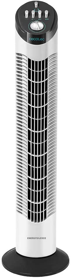 Cecotec Ventilador de Torre con Temporizador EnergySilence 790 Skyline. 50 W, 30” (76cm) de Altura, Mecánico, Oscilante, Motor de Cobre, 3 Velocidades, Blanco