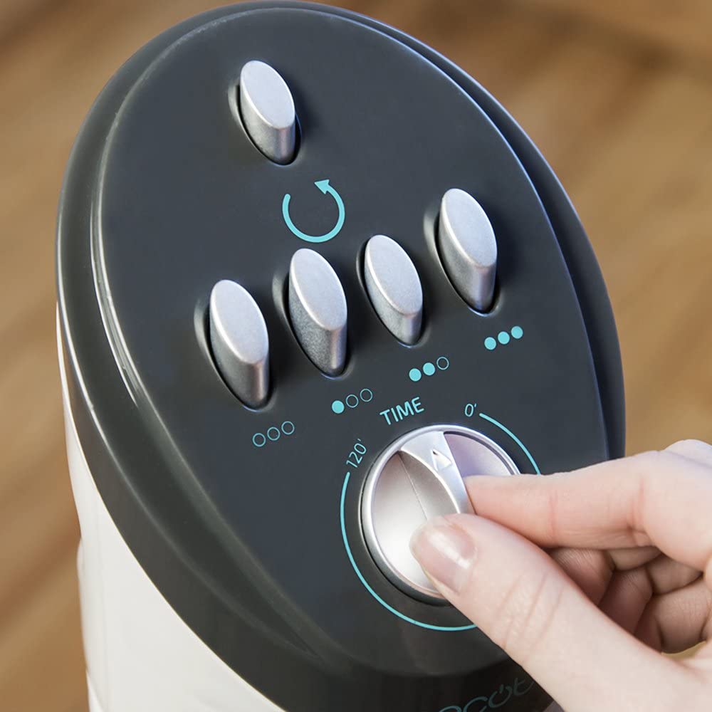 - Gracias a la tecnología 3Speed Function: podrás elegir entre 3 velocidades de funcionamiento, adecuando la intensidad del caudal de aire a tus necesidades. Dispone de temporizador programable hasta 2 Horas, transcurridos los cuales el ventilador se apaga de forma automática, para proporcionarte la máxima comodidad durante su uso y ahorrar energía.